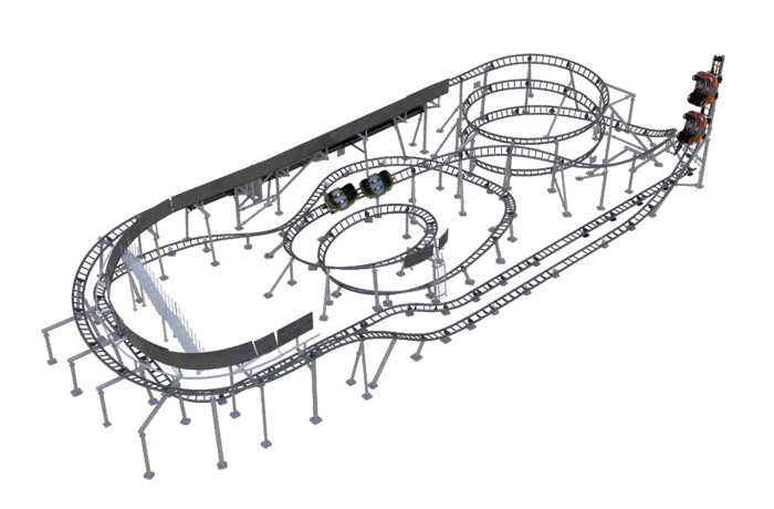 酷炫過山車是應(yīng)用LSM電磁彈射技術(shù)開發(fā)的全新一代過山車,具有瞬時推力大的特點。短行程的發(fā)射使列車3秒內(nèi)完成時速從0到43km/h的加速,強勁的推背感緊接U型回蕩、貼地?速轉(zhuǎn)彎、以及雙層螺旋回環(huán)一氣呵成,讓游玩體驗豐富刺激。無動力自旋式車體配合腿部壓桿,極大提升了乘客的自由感和舒適度??犰胚^山車尤其適合室內(nèi)樂園。
